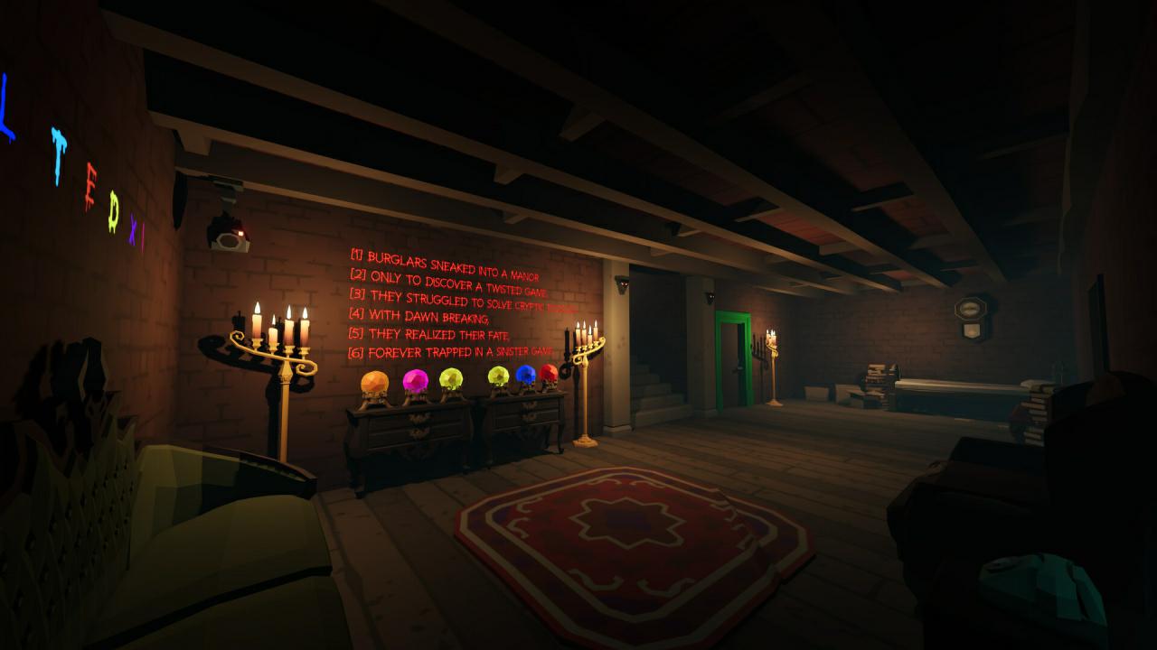 Жанр: Приключения Разработчик: Deluded Games Интерфейс: Английский Озвучка: Английская Таблетка: Не требуется Как и многие классические детективы и фильмы ужасов, события "We Escaped a Twisted Game" берут своё начало на территории старого зловещего поместья, которое скрывает в себе немало смертоносных секретов. Именно в этих стенах и оказались наши герои (Чад и Стейси), где их ожидает настоящая череда сумасшедших испытаний. Примите участие в решении нетривиальных головоломок, взаимодействуйте с многочисленными элементами окружения, задействуйте голосовую связь, чтобы иметь возможность оказывать помощь своему напарнику (ибо, в данный момент, вы отделены физически друг от друга) и приготовьтесь к новой порции захватывающих приключений, где любая ошибка может стоить вам жизни! Системные требования: